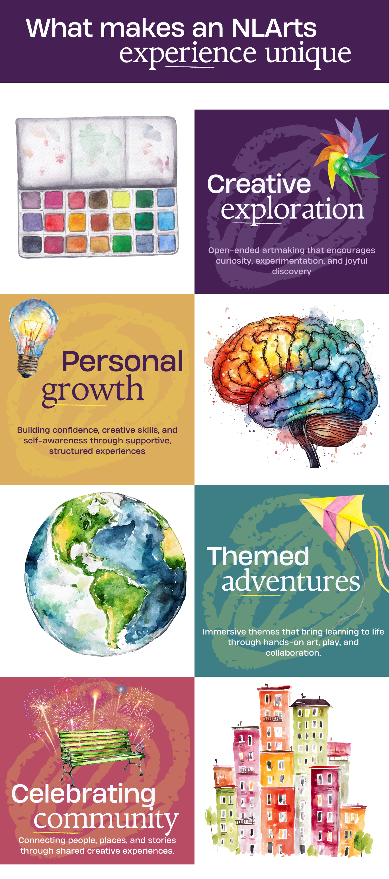 “...his favorite of all was NLArts camp! He really responded to the programming, cadence of the day, as well as the staff. Thank you for offering such a great program!”